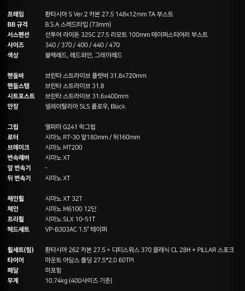 초경량 카본바디에 시마노의 고급부품 대명사 xt급 자전거로